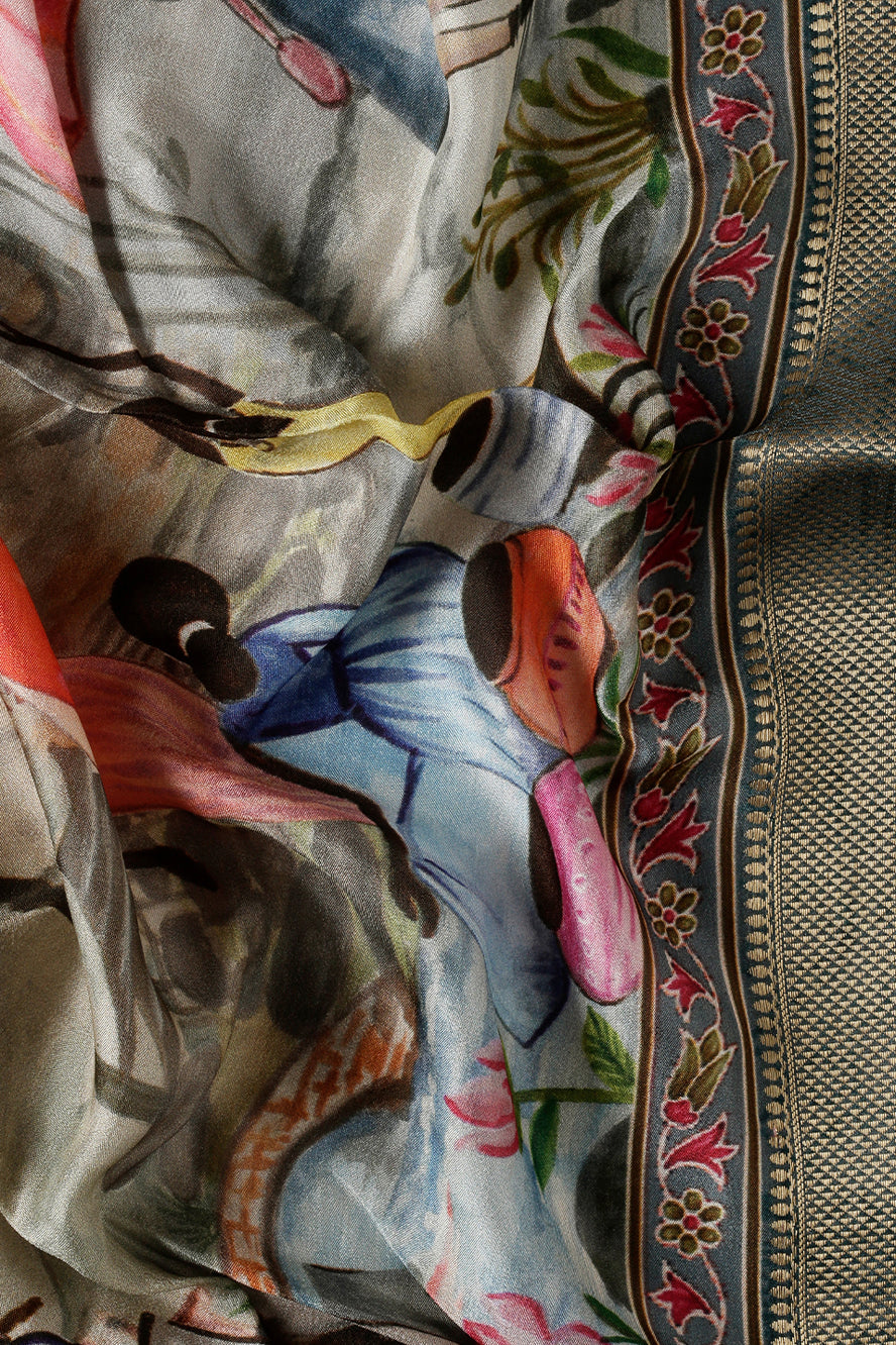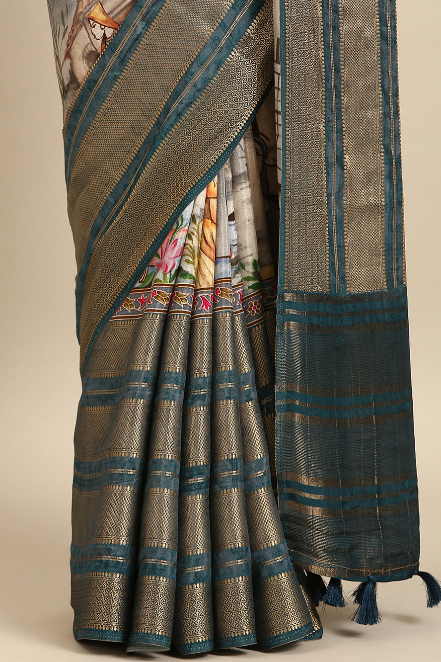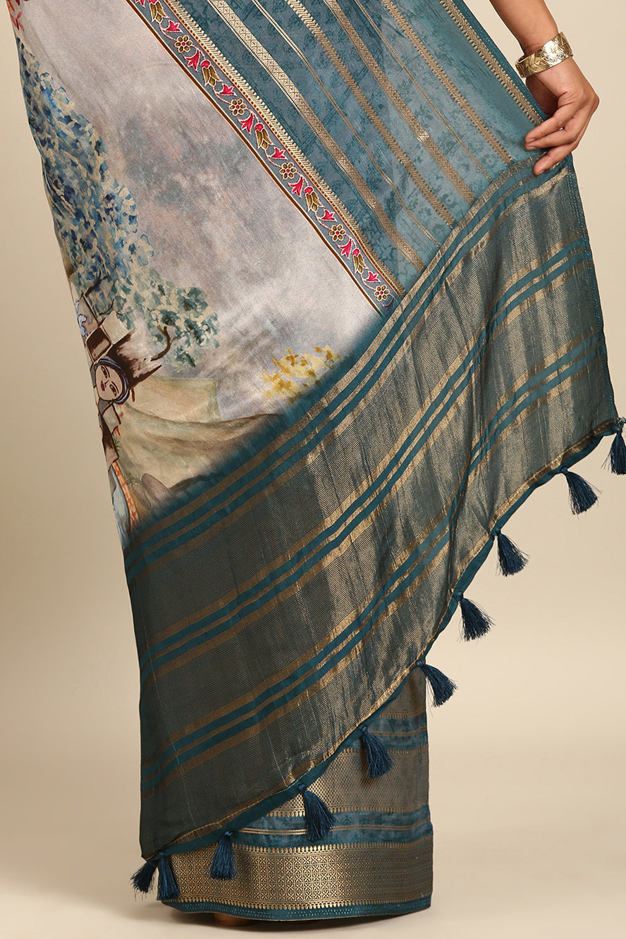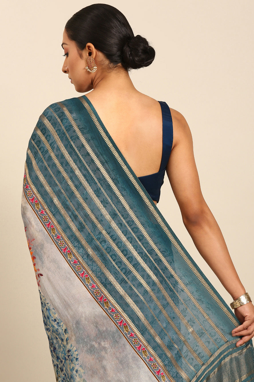 Command attention in this stunning blue crepe silk saree, featuring a dramatic broad zari border. Its deep hue and fluid drape create a powerful and elegant silhouette, making it the perfect choice for grand celebrations, weddings, or any event where you want to leave a lasting impression.
