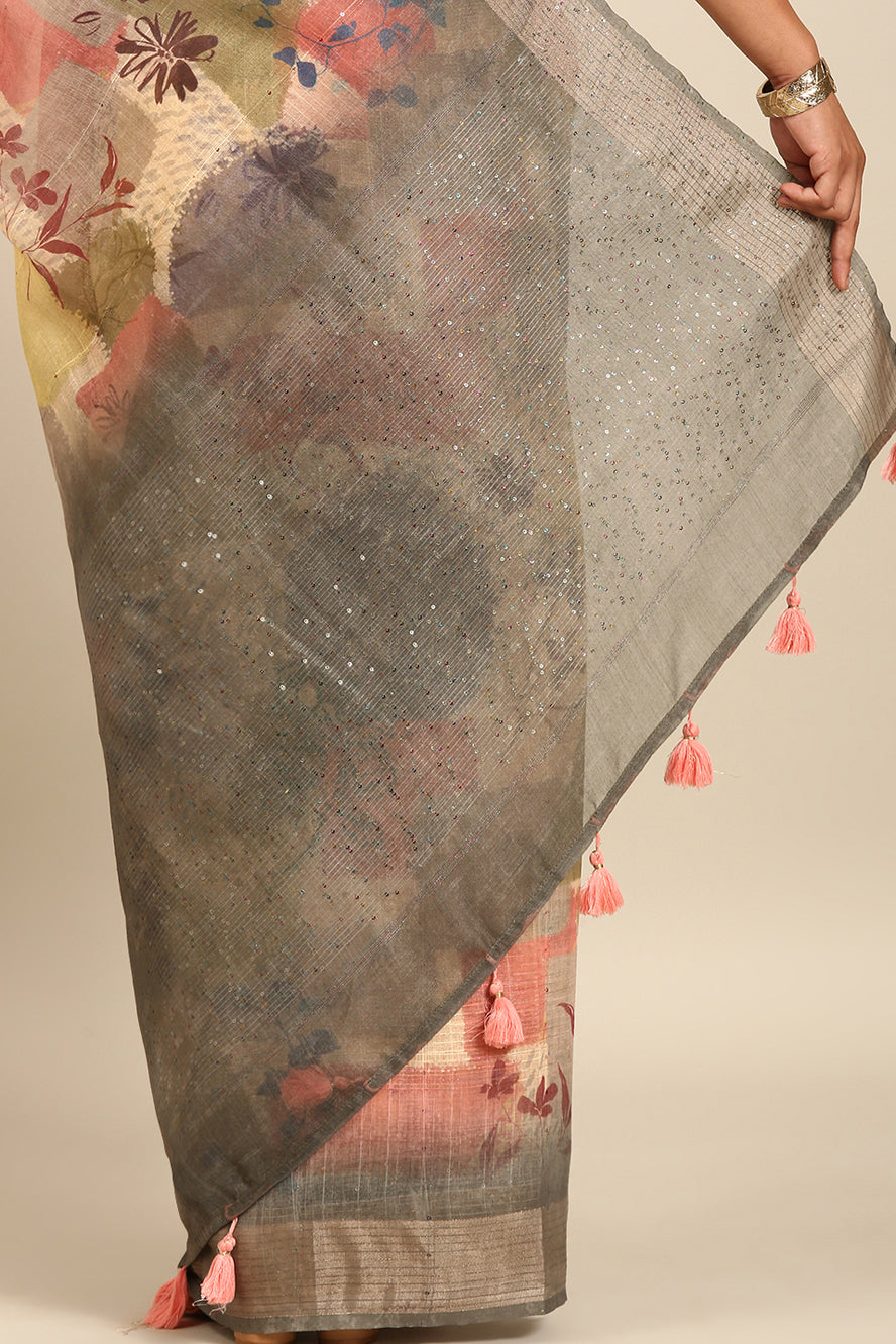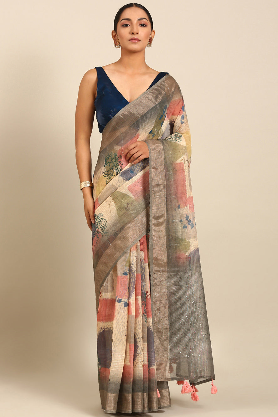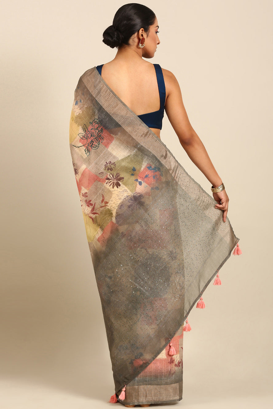 Embrace effortless grace in this green cotton silk saree, renowned for its dreamy drape and lightweight comfort. The delicate all-over print, complemented by a traditional zari border, makes this saree a perfect choice for brunches, daytime events, or adding a splash of quiet charm to your everyday style.