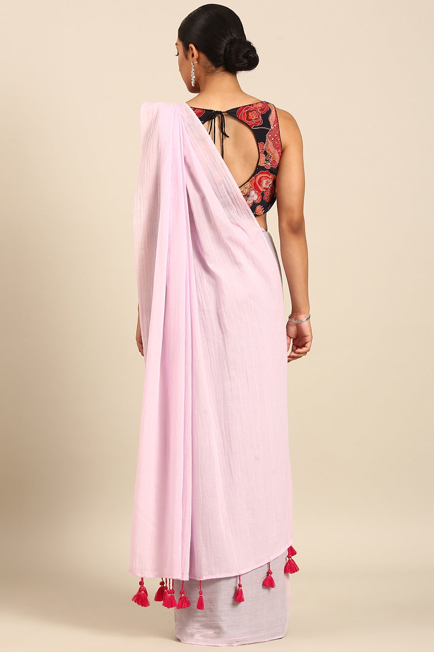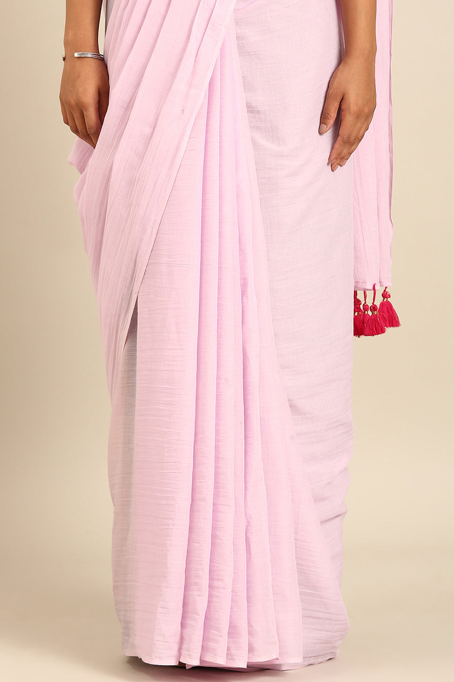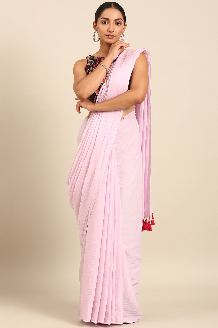 Embrace serene sophistication. This solid lavender saree offers a refreshing and unique pastel hue. The subtle bhoti detail adds a hint of tradition to this otherwise modern, calming palette.