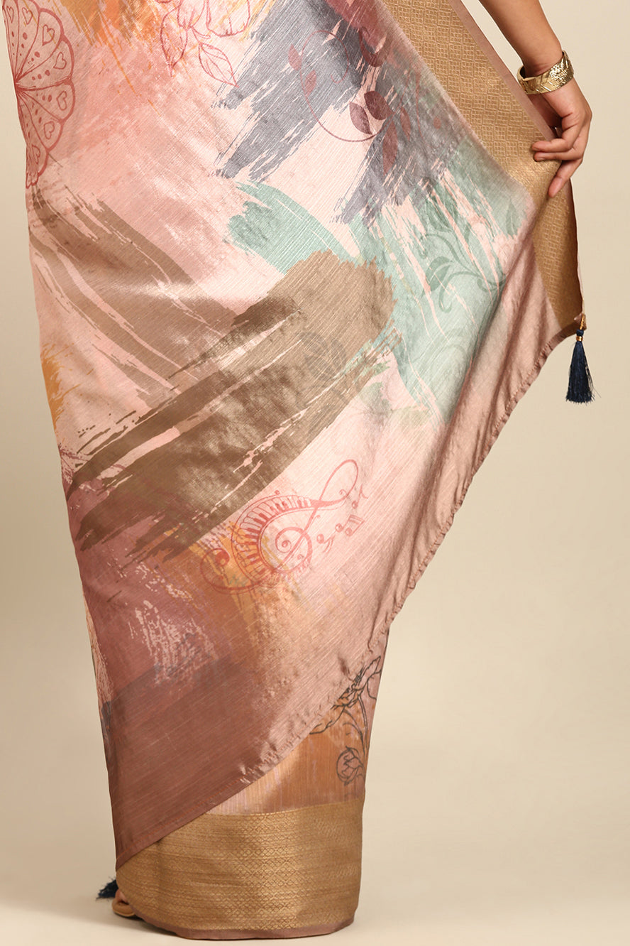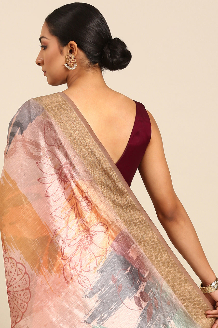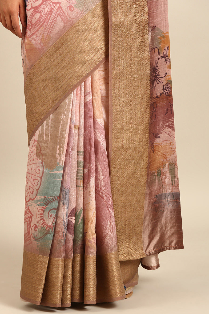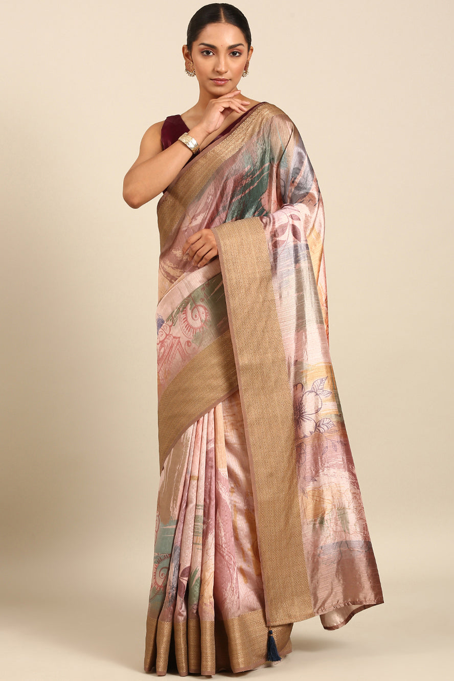 Discover the fluid elegance of this maroon and pink Tussar silk saree, designed to drape like a dream. The all-over print and classic zari border create a look of understated sophistication, making it a natural pick for daytime elegance, casual gatherings, or a touch of everyday luxury. Comfortable, charming, and effortlessly beautiful.