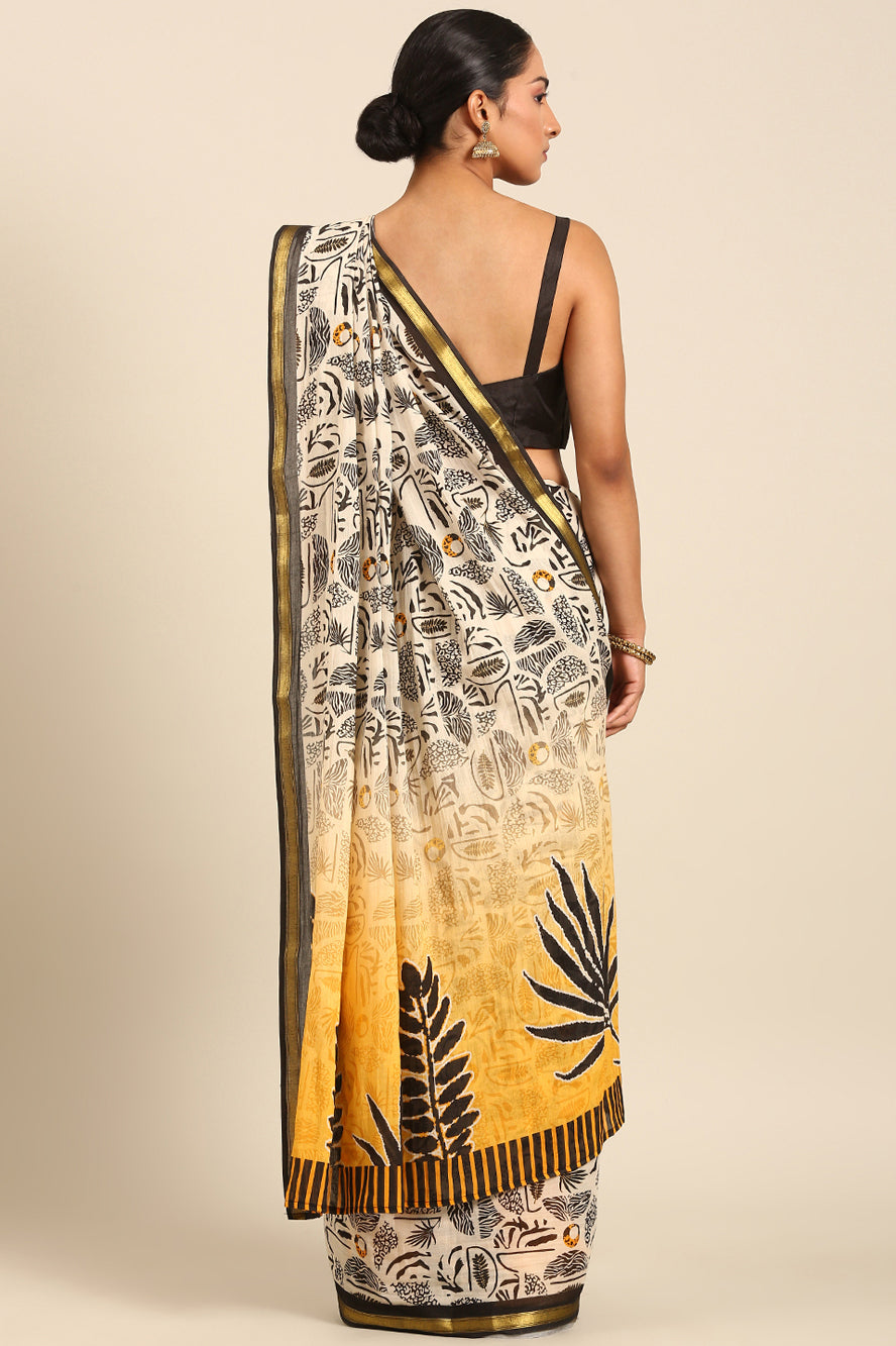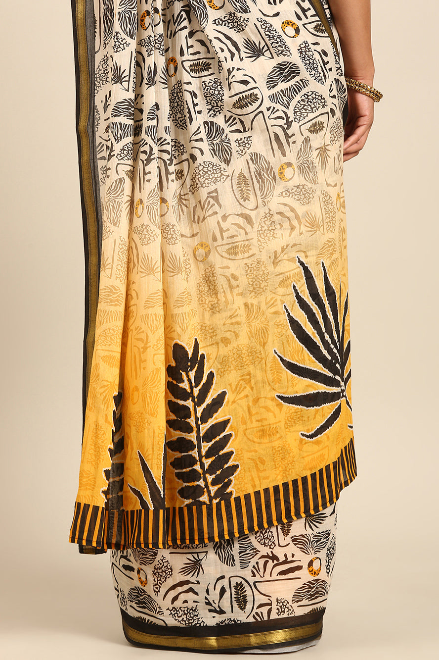 A bold and graphic contrast defines this look. The vibrant yellow and black all-over print is accentuated by a clean gold border, offering a sharp, high-impact style that’s perfect for making an entrance.